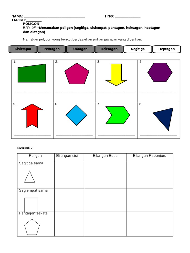 Ejercicio De Poligon Sekata Para Tahun 5